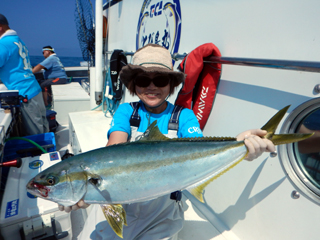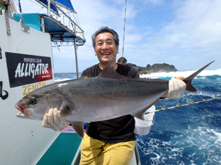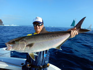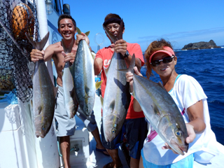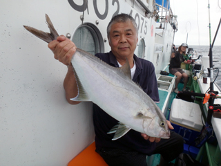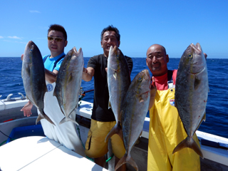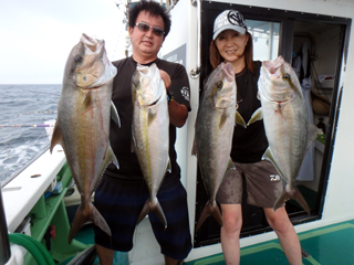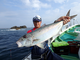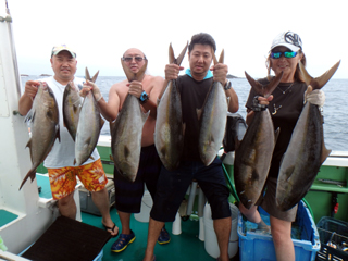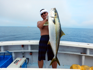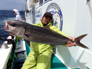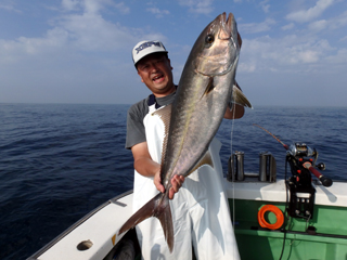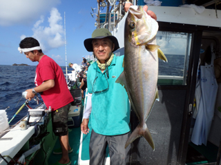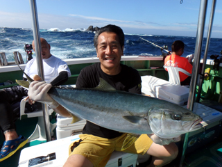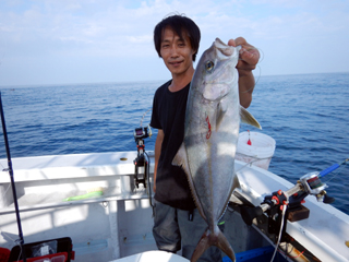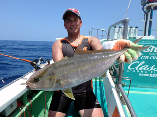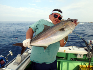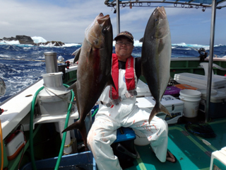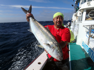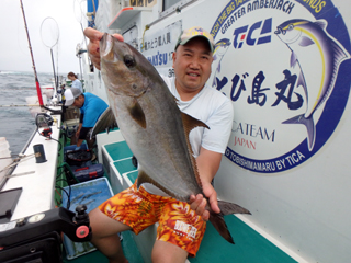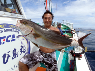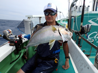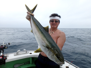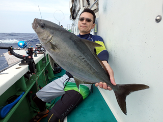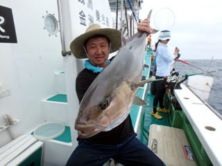 08/11 銭洲 24.0℃濁り カンパチ2.25-6.7kg0-3計10本、ヒラマサ4.2kg1本、ツムブリ3.8kg1本 相模原市Sさん、誕生日おめでとうございます!