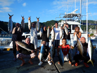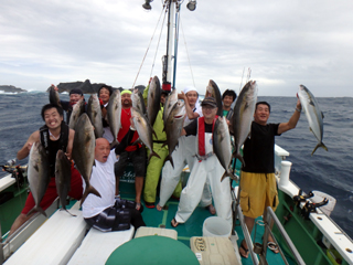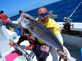 08/03 銭洲 25.2℃薄濁り カンパチ2,25-7.4kg0-4計20本、ヒラマサ3.55kg1本、ツムブリ3.3kg1本、スマカツオ3.5kg2本 ハードな海の中、皆さんお疲れ様でした!