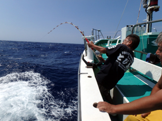 08/01 銭洲 27.1℃澄み 丸得仕立 カンパチ釣り教室 カンパチ2.05-8.8kg4-5計11本、ハガツオ3kg級1本 カンパチの誘いから、ヒットまでのイロハを念入りにVIP授業! とび島丸トップペ-ジ 2017/08/01-08/30 Photo 過去 戻る