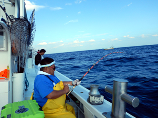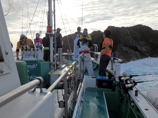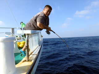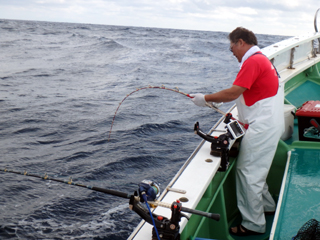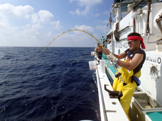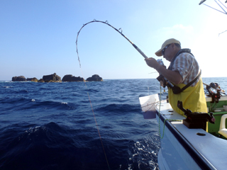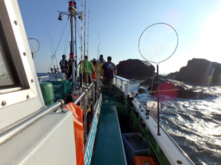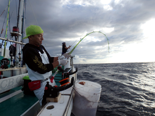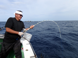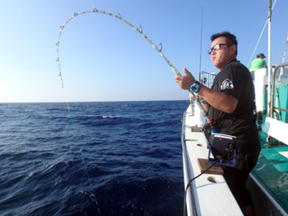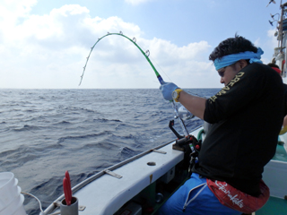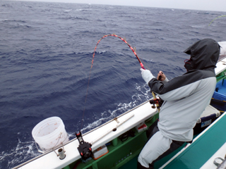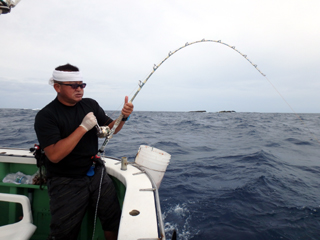 10/13 石花海24.3℃薄濁り キハダ30.3kg1本、メダイ4.8-6.75kg0-3本 間合いをぬっての石花海ヤリイカ泳がせ釣り!
