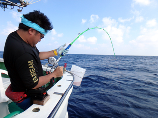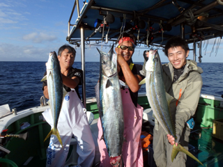 モロコ16.0kg1本、ヒラマサ3.6kg0-1本、ツムブリ1.5-5.9kg0-2計6本、シマアジ0-8枚、ウメイロ