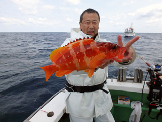 04/30 銭洲22.7℃澄み加減 赤イカ作戦 カンパチ4.75-6.15kg1-4計12本、シマアジ1-1.5kg級0-1計3枚、ウメイロ、ジャンボイサキ、ヒメダイ等 カンパチ、シマアジ反応多く、大型カンパチ居ます!