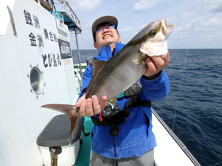 04/02 銭洲21.0℃薄濁り カンパチ1.6-2.2kg0-3計8本、シマアジ30cm級0-3計8枚、ウメイロ五目30-40cm級トップ60枚以上 反応、ハンパなく出まくり!シマアジ、カンパチ!釣れだしそうです!