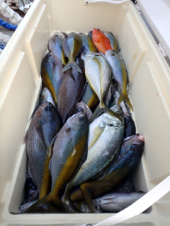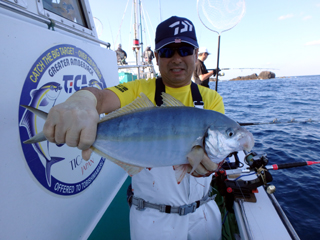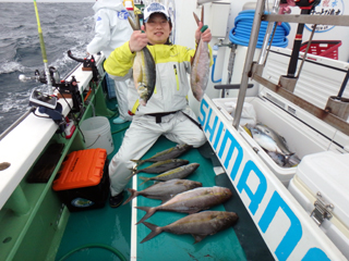 カンパチ1.1-3.0kg1-28計59本、シマアジ1-2.0kg級5-11計58枚、 爆釣!シマアジ、カンパチ絶好調です!!!