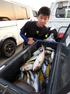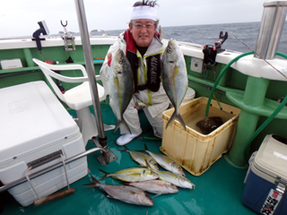 04/01 銭洲20.4℃濁り カンパチ1.05-1.85kg0-3計10本、シマアジ30cm級0-4計18枚、ウメイロ五目30-40cm級0-30枚