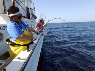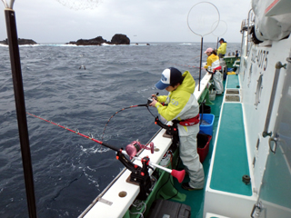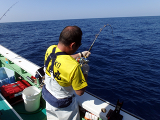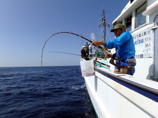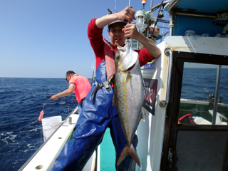 04/29 銭洲22.4℃澄み加減 赤イカ作戦 カンパチ1.2-10.05kg0-4計17本、ツムブリ8.35kg1本、ルアカン1本、ルアー鰹2.35kg カンパチターゲットに、泳がせとルアーで狙いました!