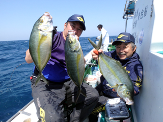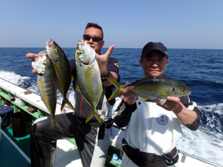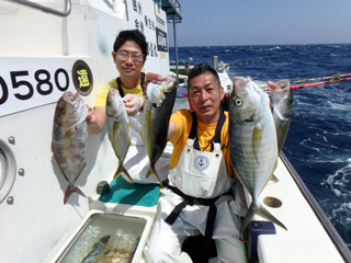 04/22 銭洲19.7℃濁り シマアジ2.3kg頭1-5計26枚、カンパチ7.55kg頭計3本、マダイ1.0-2.35kg計3枚、ウメイロ五目、ルアカン1.1-3.9kg6本 良いサイズのカンパチ交じりました。シマアジも!良いサイズぼちぼちあたります。