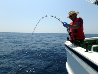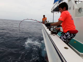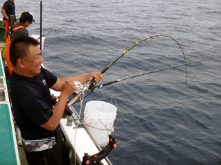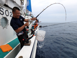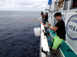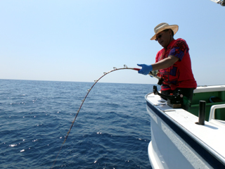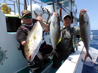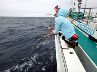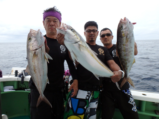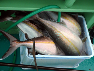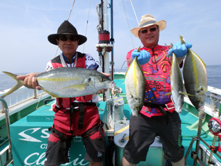 05/21 銭洲23.2℃澄み ムロアジ作戦 カンパチ5.5-10.4kg0-1計3本、シマアジ1kg級0-4枚、ルアカン1.5kg、スマ3.1kg、ハガツオ1.8kg ムロアジ泳がせもできるので、道具の用意お願い致します。最後まで頑張ってくれた皆さん!有難う御座いました。