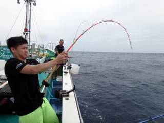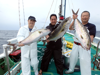 05/29 銭洲23.3℃澄み アカイカ作戦 極の会仕立 カンパチ2.35-8.55kg1-7計36本、ウメイロ五目35-40cm級15-30枚 銭洲カンパチ絶好調!どこもかしこも良い反応出してました!