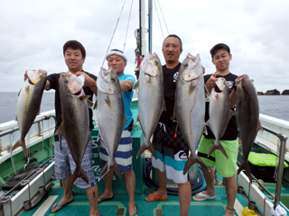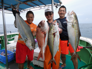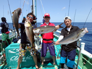 カンパチ1.8-6.5kg0-6計9本、マダイ2.05kg1枚、ウメイロ五目35cm級0-20枚、 ルアー絶好調!!!カンパチ、ポンポンヒット!前日、潮タルタルでしたので作戦考えながらの攻めでした!
