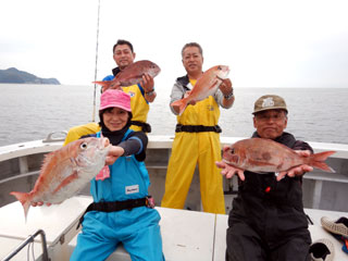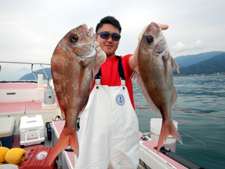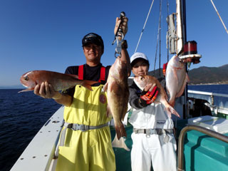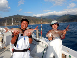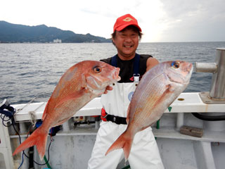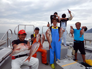 2018/10/03 土肥沖 25.6C°濁り 秋鯛好調です! マダイ0.4-1.6kg頭7計20枚! ワラサ5.8kg他イナダ等!