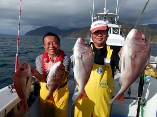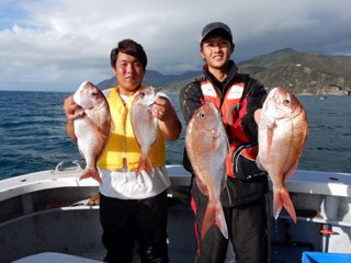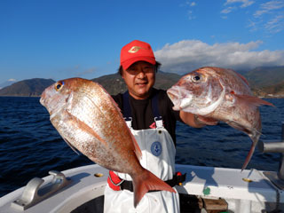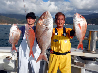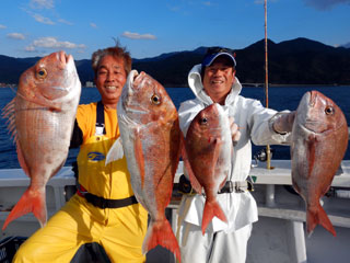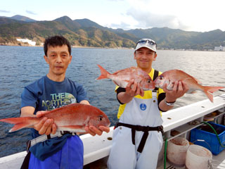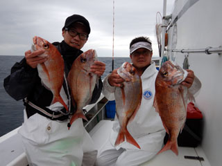 2018/10/29 土肥沖 22.8C°薄濁り マダイ0.4-2.05㎏ 1-6計34枚!