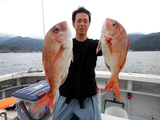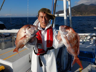 2018/10/27 土肥沖 23.5C°薄濁り マダイ0.4-1.75㎏ 1-11計48枚!