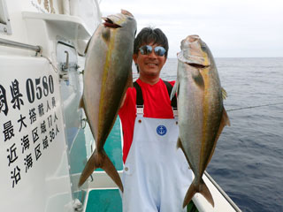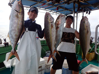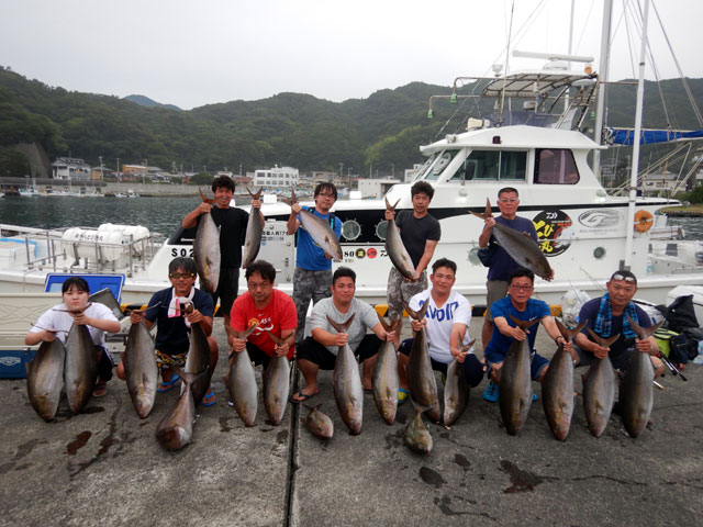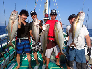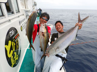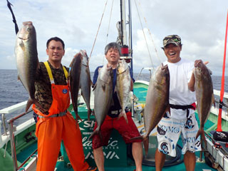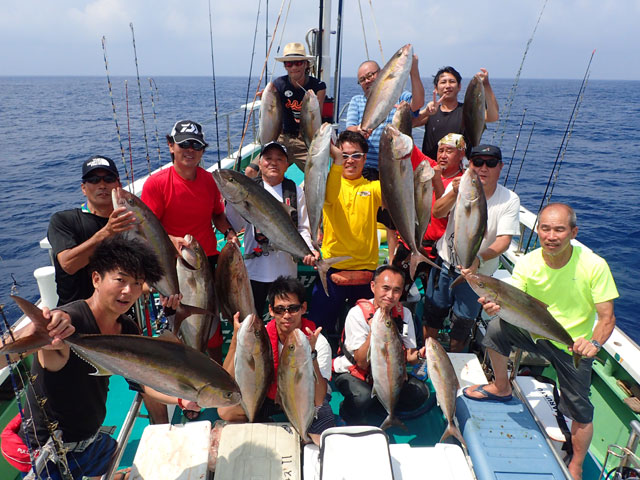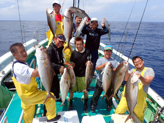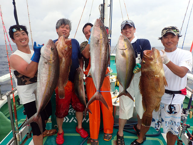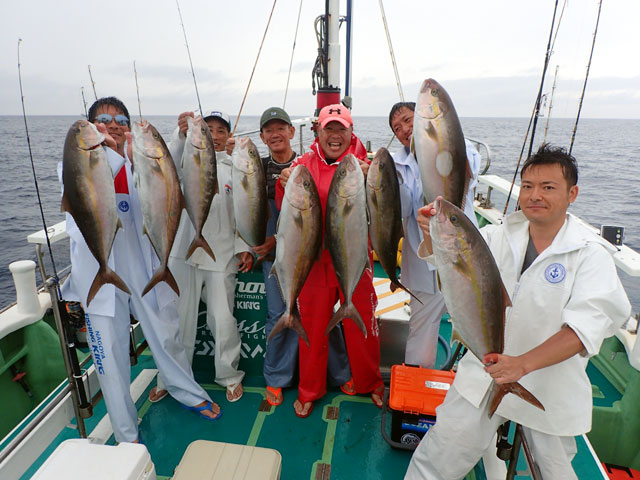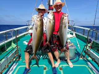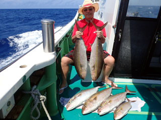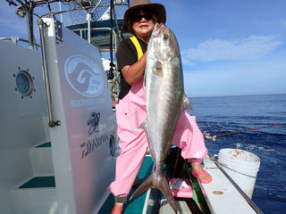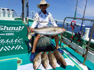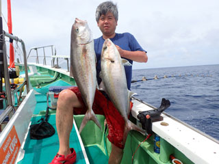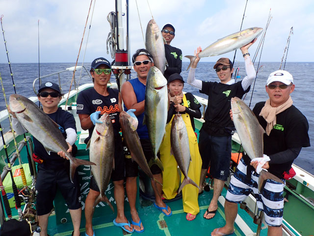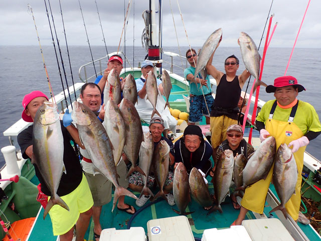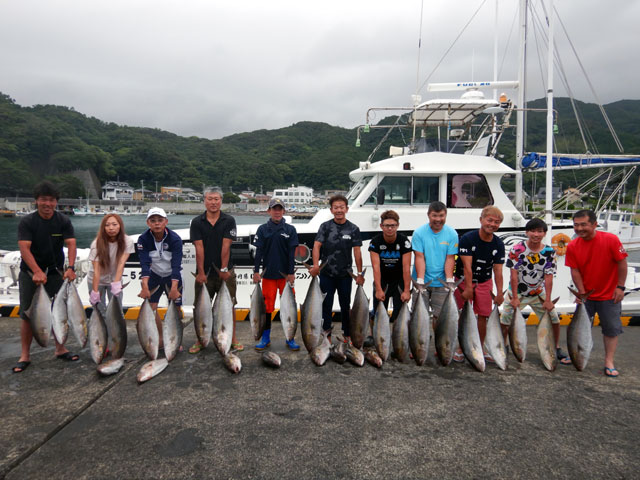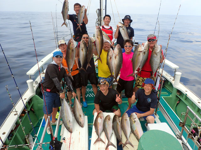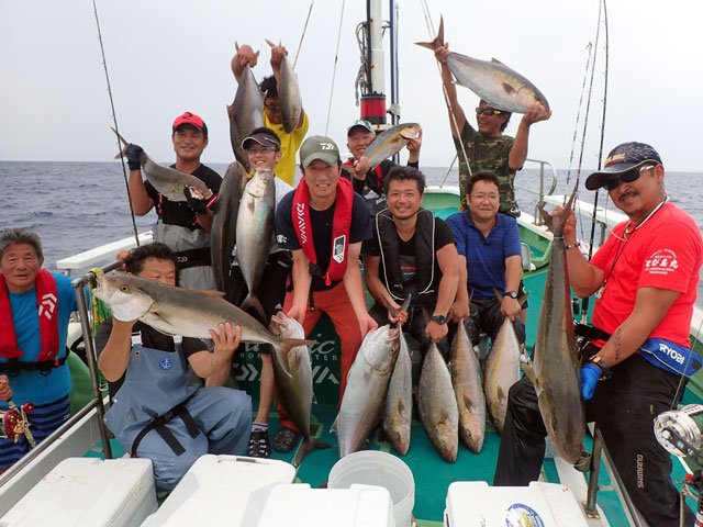 令和元年 07/31 銭洲 28.4℃澄み加減 仕立 カンパチ2.1-12.8kg5-6計11本、ウメイロ五目35cm級10-13枚