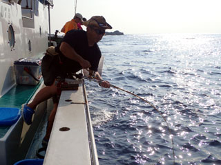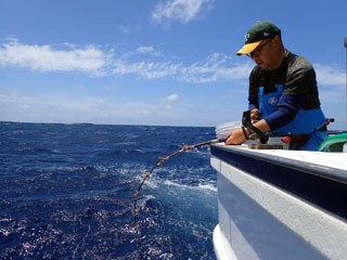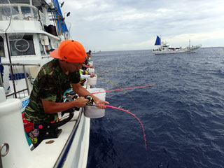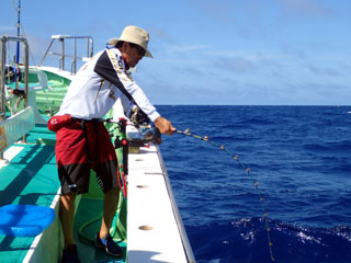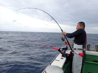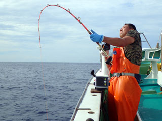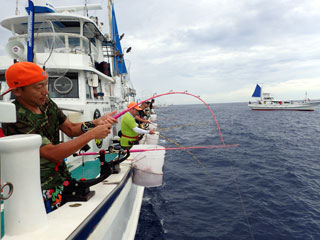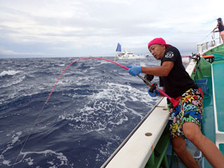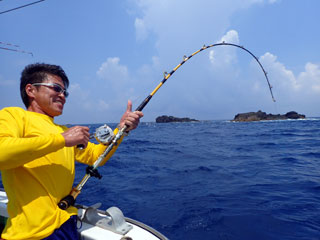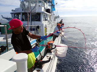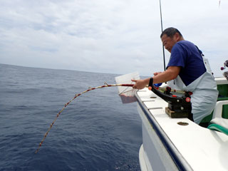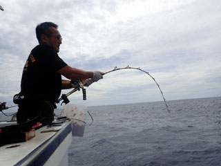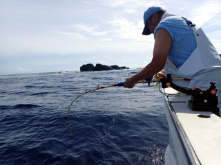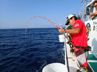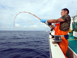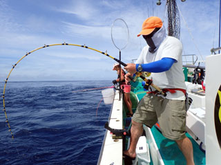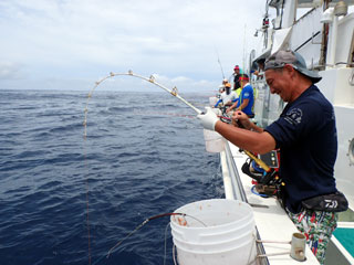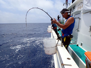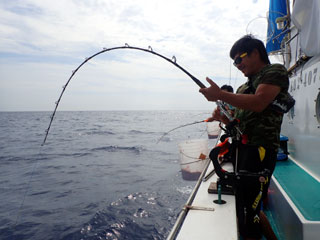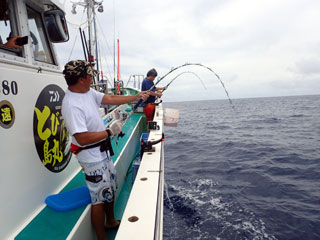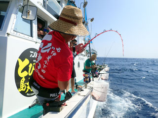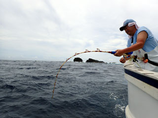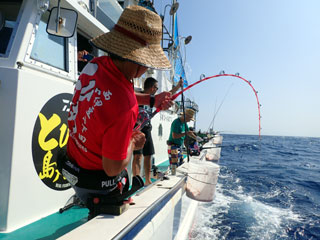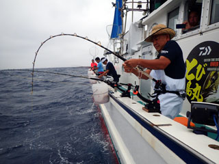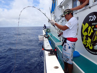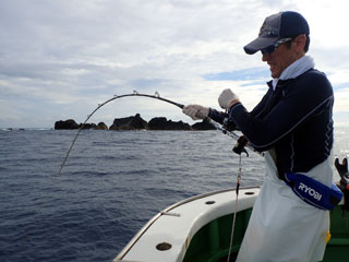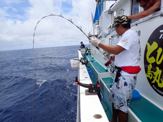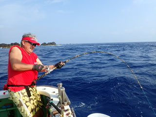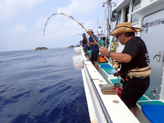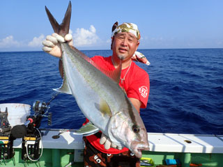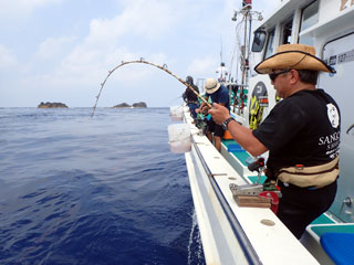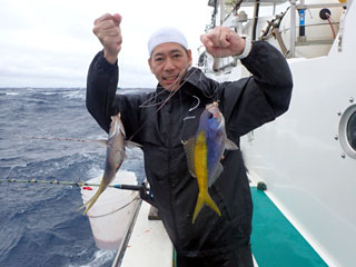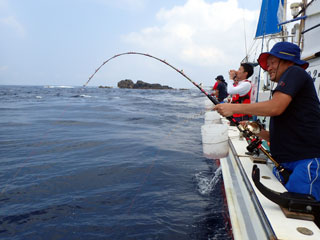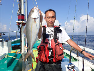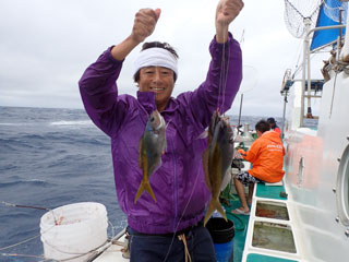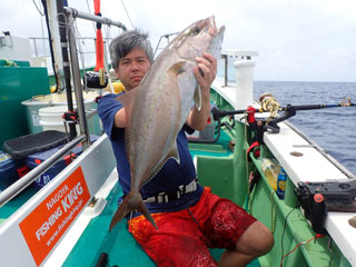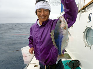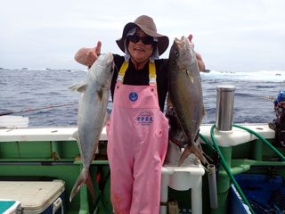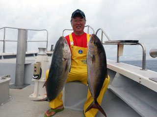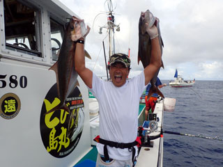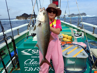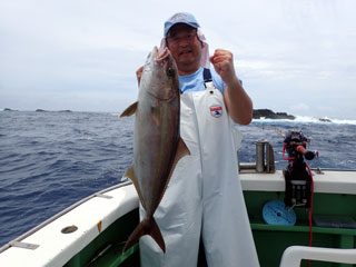 令和元年 07/02 銭洲 26.3℃澄み ムロアジ作戦 カンパチ4.5-9.8kg0-3計9本、ウメイロ五目35-40cm級6-52枚、アオダイ40cm級0-5枚 とび島丸トップペ-ジ 2019/7/02-7/31 Photo 過去 戻る