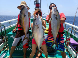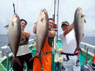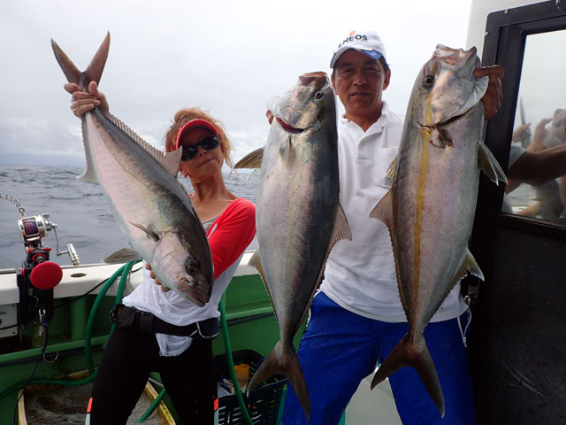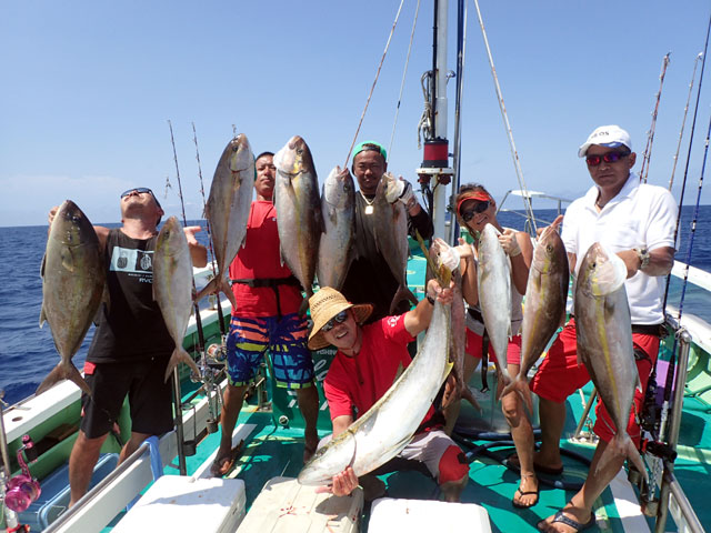 令和元年 07/24 銭洲 27.2℃澄み ムロアジ作戦 カンパチ2.3-10.1kg1-9計37本、ルアキメ4-5.8kg3本