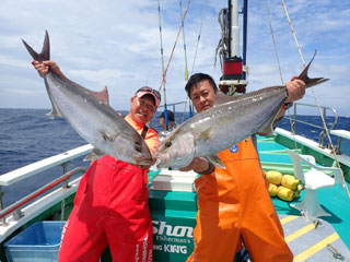 令和元年 07/21 銭洲 24.8-26.2℃澄み カンパチ3.9-17.4kg頭5計19本、ヒラマサ11.1kg1本、ワラサ5.75kg、サワラ10kg級1本、アオダイ等