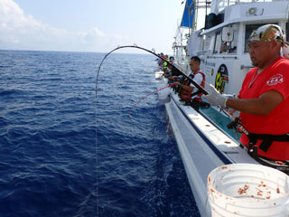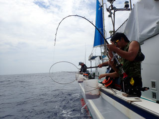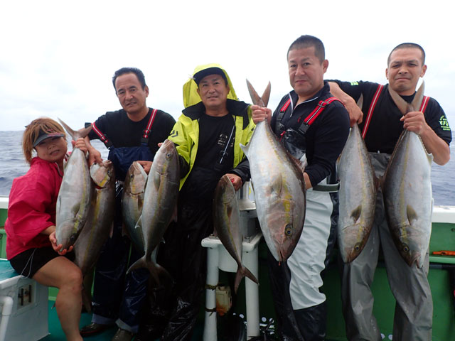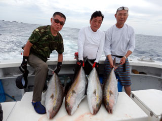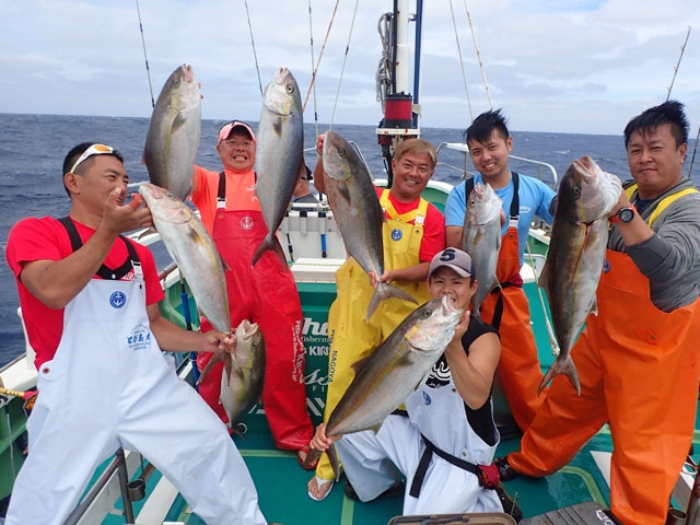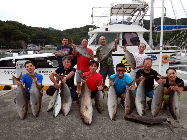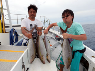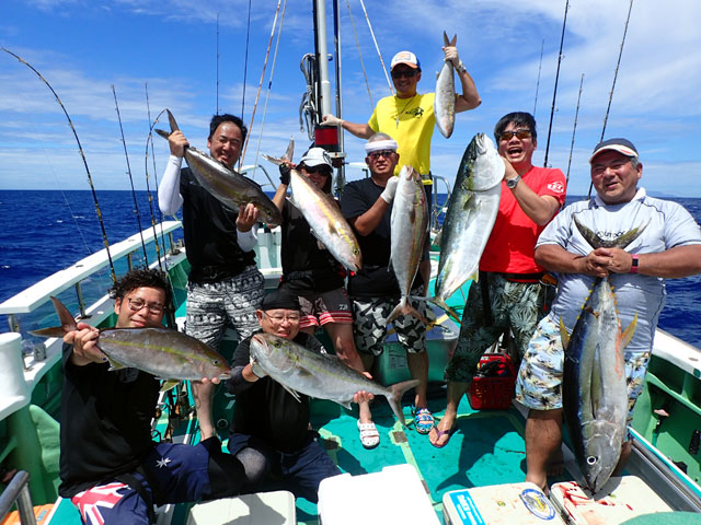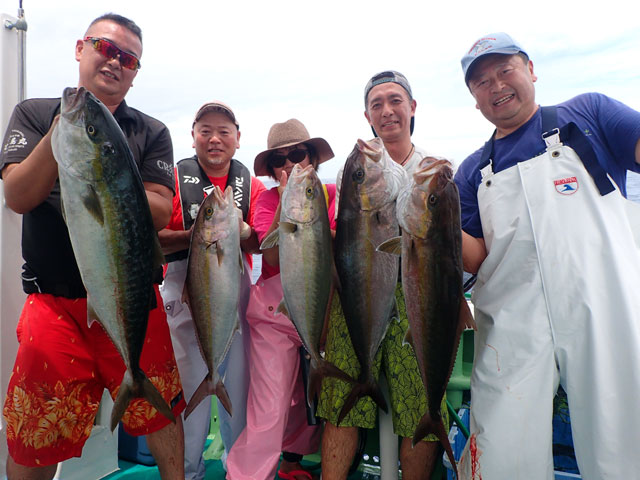 令和元年 07/09 銭洲 26.2℃澄み ムロアジ作戦仕立 カンパチ2.3-8.7kg1-3計8本、キメジ3.5kg1本、カツオ1.45-4.55kg6本