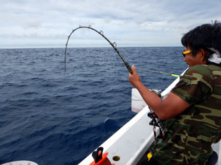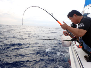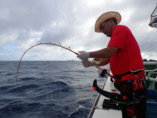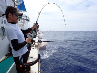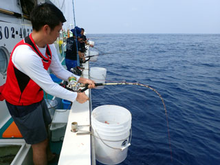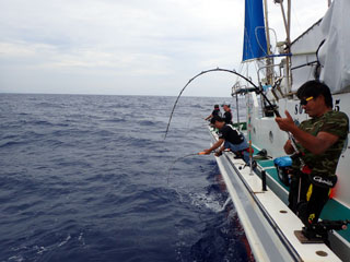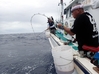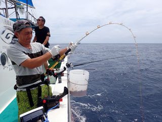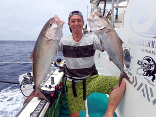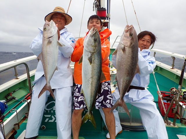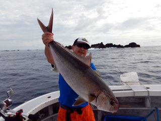 令和元年 07/23 銭洲 27.6℃澄み ムロアジ作戦 カンパチ1.65-11.25kg0-3計15本