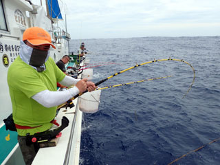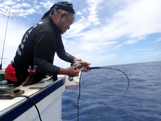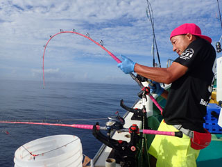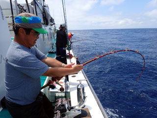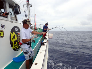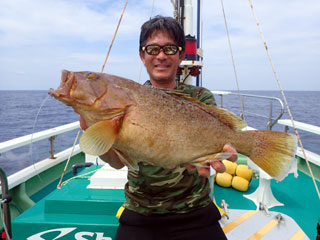 令和元年 07/22 銭洲 28.4℃澄み 仕立 カンパチ3.7-13.45kg4-10計30本、イヤゴハタ7.1-8.0kg0-1計2本