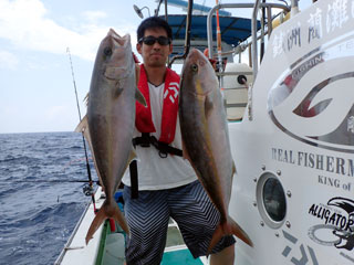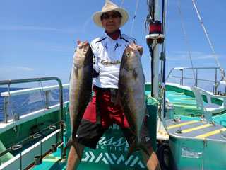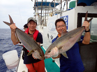 令和元年 07/20 銭洲 25.7-27℃澄み カンパチ3.85-12.3kg1-5計25本、ウメイロ五目30-40cm級頭30枚