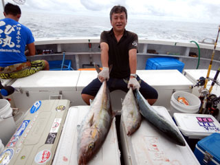 令和元年 07/15 銭洲 26.9℃澄み カンパチ4.35-10.2kg0-2計3本、ヒラマサ2.2kg1本、ウメイロ等