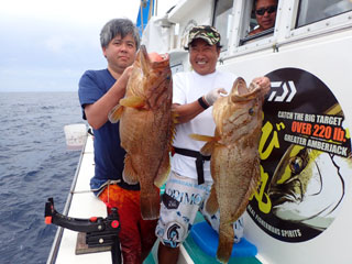 令和元年 07/15 銭洲 26.9℃澄み 三島丸子会例会 カンパチ2.0-15.1kg0-2計5本、ヒラマサ12.6kg1本、アオダイ40cm級10-20枚、ウメイロ五目35cm級10-45枚