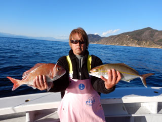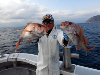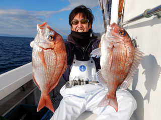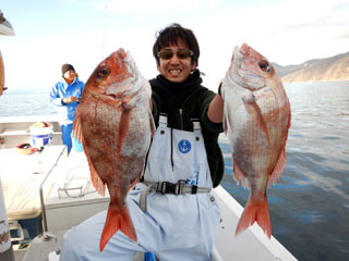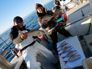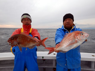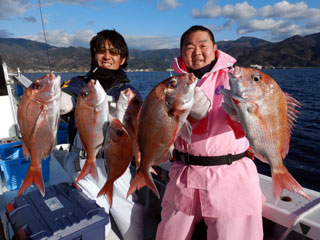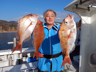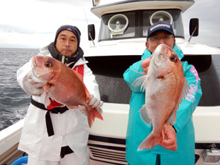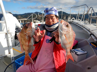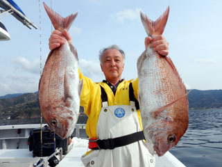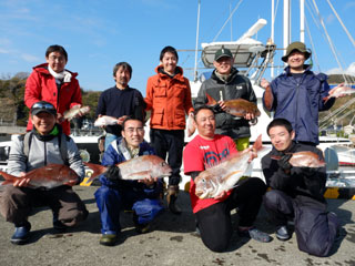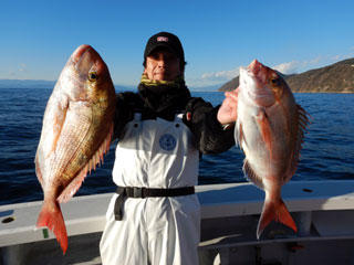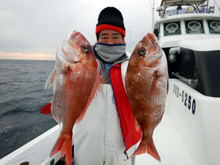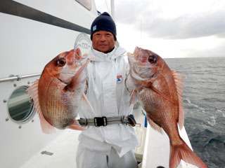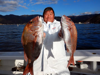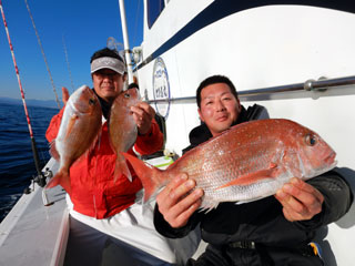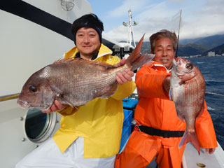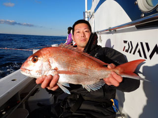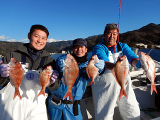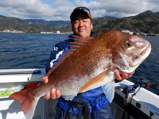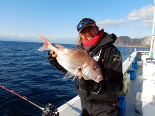 2019/01/02 土肥沖 17.8-19.0℃澄み加減 マダイ2.2kg頭5計11枚、ハナダイ0.4-0.7kg3枚、イナダ、オオモンハタ、ソウダ等 |