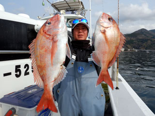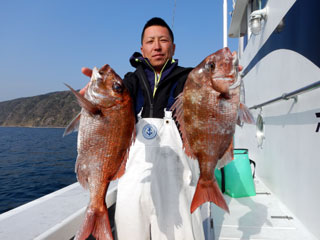 2019/03/27 土肥沖 仕立 マダイ頭3.6kg、メジナ等