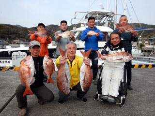 2019/03/29 土肥沖 16.2-17.4℃薄濁り マダイ0.4-2.65kg0-6計20枚、イサキ、オオモンハタ等